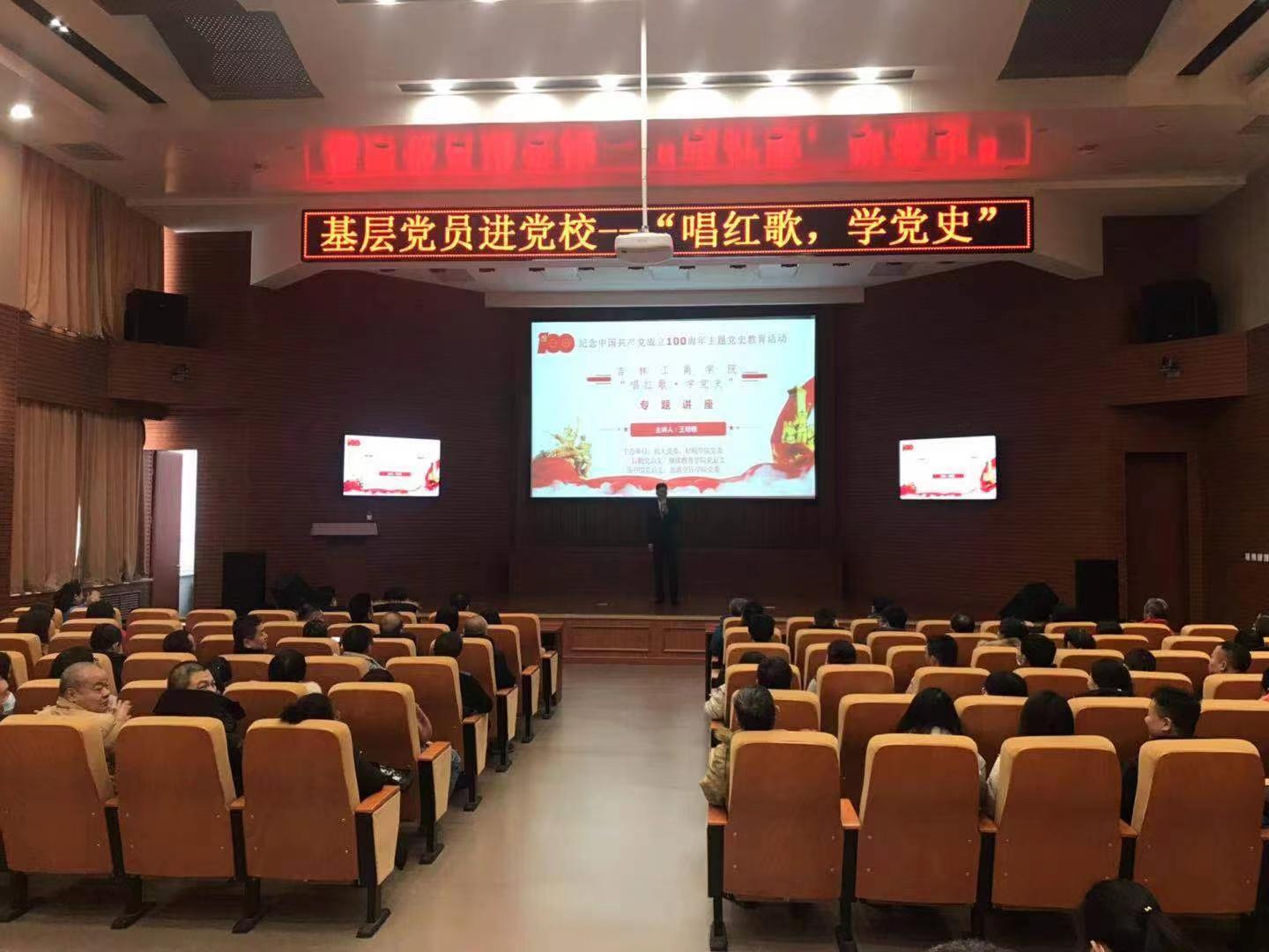 今天,在第二教学楼429会议室,由机关党委、财税学院、后勤党总支、继续教育学院党总支、图书馆党总支和旅游烹饪学院党委联合主办的为纪念中国共同共产党成立100周年的专题讲座。由王明明老师主讲,本期党课主题为:唱红歌,学党史。会上我们听王明明老师讲解了红歌的由来,了解了革命先烈的英雄事迹,增强了我们的爱国情怀。歌曲不仅仅有教化功能,在那样一个特殊的时代,红色歌曲传递的是信息、传递的是情感、更是靠着红歌表述心境、鼓舞人心。会议在全体党员的颂歌中结束,没有共产党,就没有新中国的旋律将一直留在每个中国人的心中。